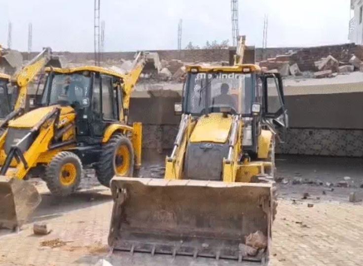 संभल में तालाब की जमीन पर बने मैरिज हॉल पर चला बुलडोजर, लोगो...