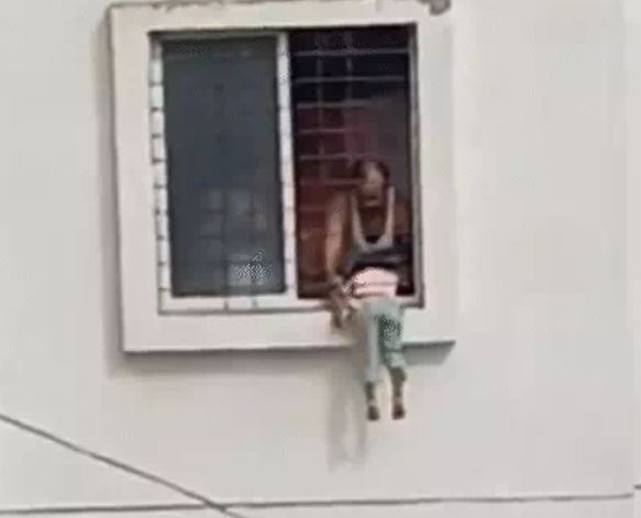 तीसरी मंजिल की ग्रिल में फंसी बच्ची, फायर फाइटर की सतर्कता स...