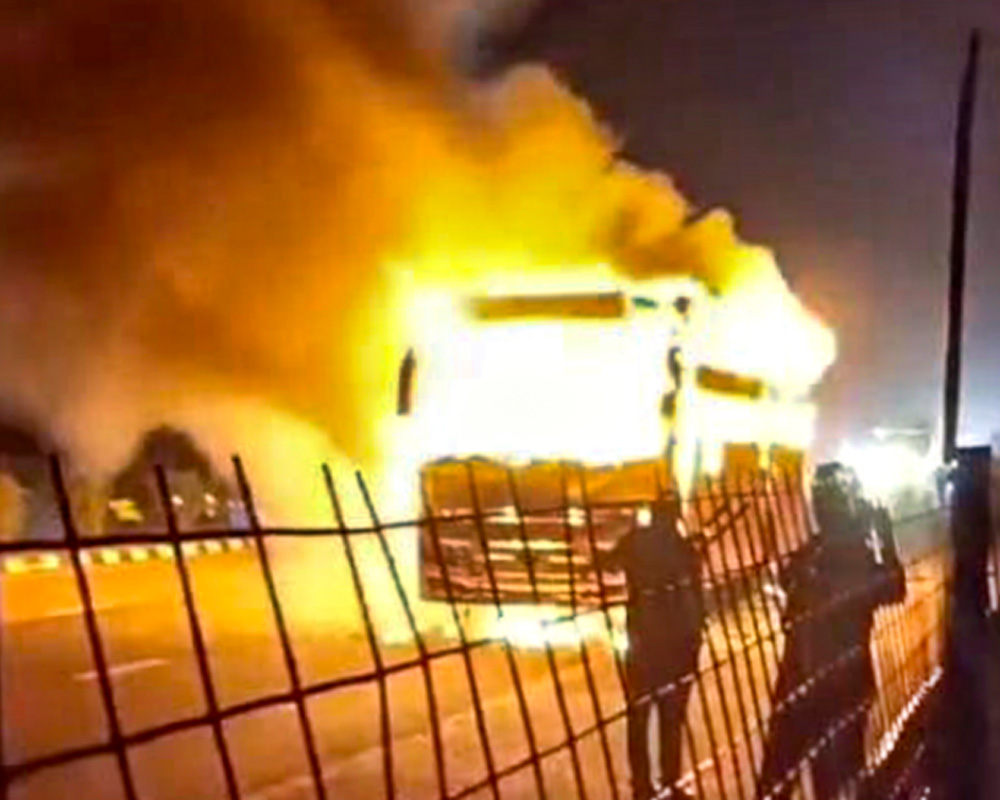 उत्तर प्रदेश के फिरोजाबाद में बस में आग लगने से कुंभ तीर्थया...