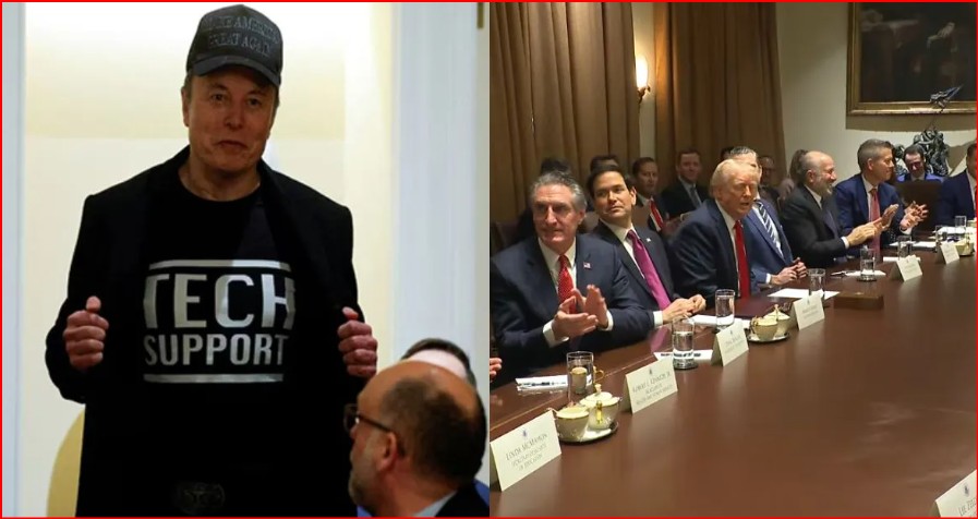खास टोपी और टी-शर्ट पहन ‘टेक्निकल सपोर्ट’ के लिए पहुंचे मस्क...