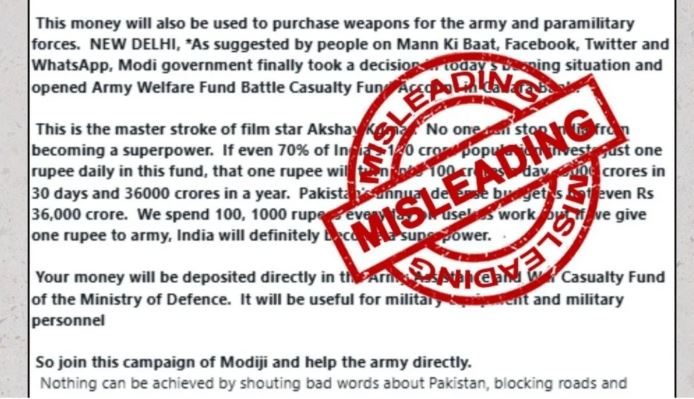 Fact Check: भारतीय सेना के नाम पर ऑनलाइन मांगा जा रहा डोनेशन...