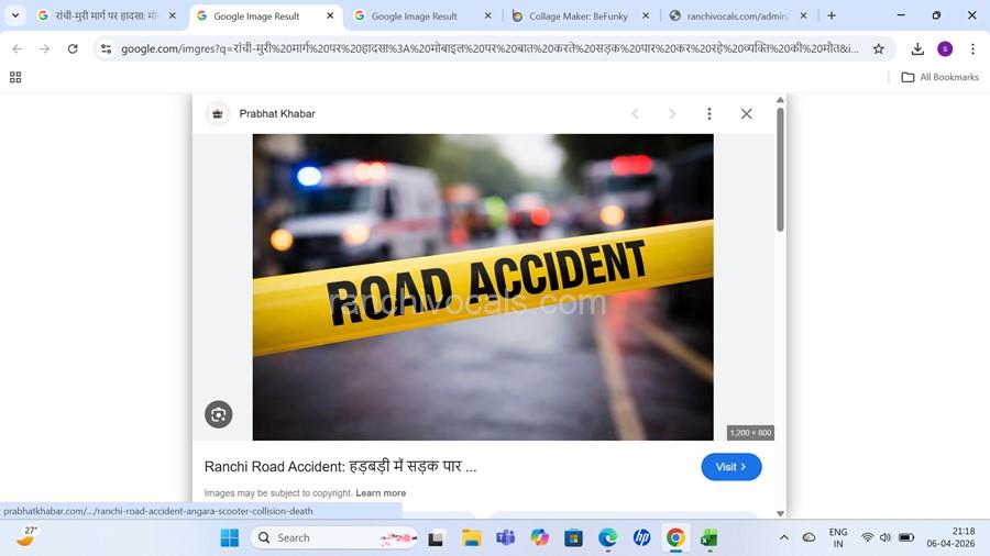 रांची-मुरी मार्ग पर हादसा: मोबाइल पर बात करते सड़क पार कर रहे व्यक्ति की मौतLocal Monday, April 6, 2026 | Posted By : Admin Team