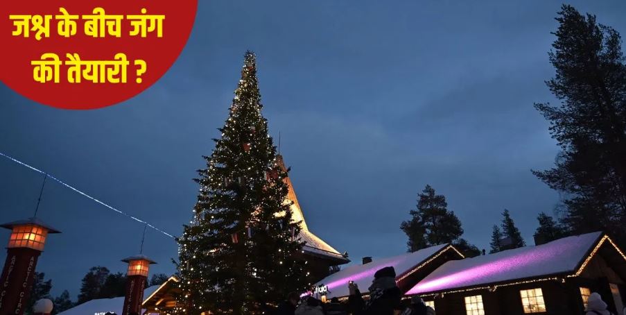 सांता क्लॉज़ के घर की बर्फीली सड़कों पर अब सैन्य वाहन दिखाई दे रहे हैं, आसमान में लड़ाकू विमान उड़ रहे हैं और सैनिक हर कोने में प्रशिक्षण ले रहे हैं।