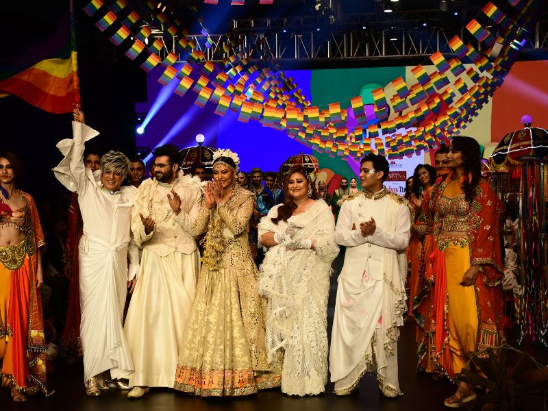 The Taali actress celebrated inclusivity in her latest appearance on the ramp for the Bombay Times Fashion Week. Sushmita Sen donned a heavy yet stunning, traditional outfit designed by Rohit Verma, walking the ramp with her Taali co-stars to celebrate inclusivity and the LGBTQ community.